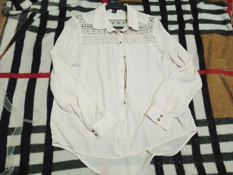 нежная блуза со вставкой в прозрачные цветы. молочного цвета