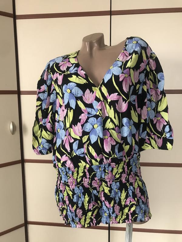 Красива яскрава блузка ,розмір 2XL-4XL(вказаний 22)довжина 67см,довжина рукава 35см,пог 68см,пот 48-65см(резинка)