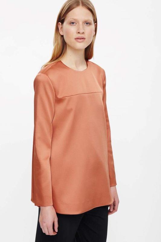 Блуза туніка COS (Швеція) цегельного кольору. Чудово тримає форму і гарно сидить на фігурі. Склад: 97% поліестер, 3% еластан. Заміри плечі 38, ПОГ 46см, рукав 60см, довжина 69см Розмір: XS також сяде на невеликий S. Ціна: 525 грн.