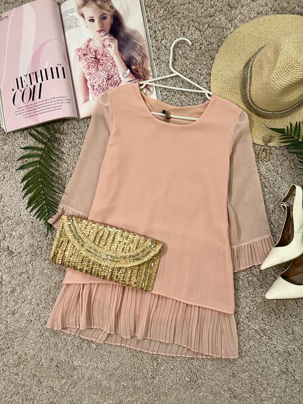 Для більш точного визначення, виміри, порівнюйте із вимірами подібної речі, а не зі своїми обсягами. Мила плісирована блуза. Тканина фактурна, є підкладка. Плісировані вставки по низу та рукавах. Є петлі для паску на талії. Стан: ідеальний. Дефекти: ні. Розмір на бірці: 36 (Виміри виробу вимірюються в напівобхваті, а не від шва до шва!) Виміри виробу: Плечі 36см., Рукав 41см., Висота пройми 20 Ширина рукава 14 напівобхват грудей 44см., напівобхват талії 40см., напівобхват низ 49см., довжина по спині 70см., довжина від плеча 69см. Склад тканини: 100% поліестер. Країна виробник: Туреччина. Бренд: Maldia. Оплата і доставка: Оплата на картку монобанк. Бронювання на оплату тільки 24 г. При змінах наміру купувати обов'язково повідомляйте! Доставка: На час введення воєнного стану, уточнюйте, чи можлива доставка до Вашого пункту. Актуальні новини можна уточнити на сайті перевізника та за номером телефону контакт-центрів. Не забудьте ПІДПИСАТИСЯ, щоб бути в курсі всіх новинок та розпродажів!