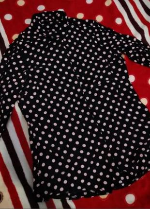 Горох ніжно рожевого кольору, підійде на 46-48 розмір,щільний шифон ,не просвічує. пог 50,пот 47,самий низ 54 ,довжина 68 см, довжина рукава 60 см