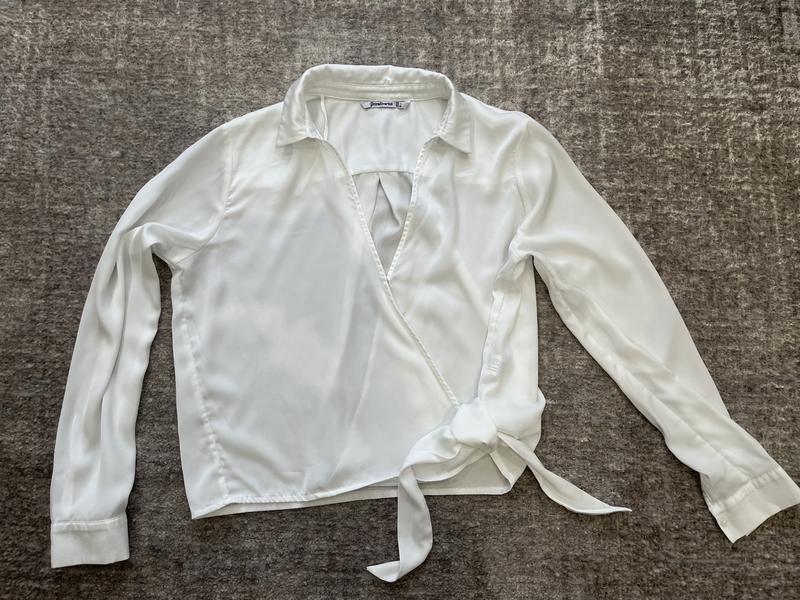Укорочена блуза на запах. Легкая полупрозрачная ткань. Цвет теплый белый. Полиэстр