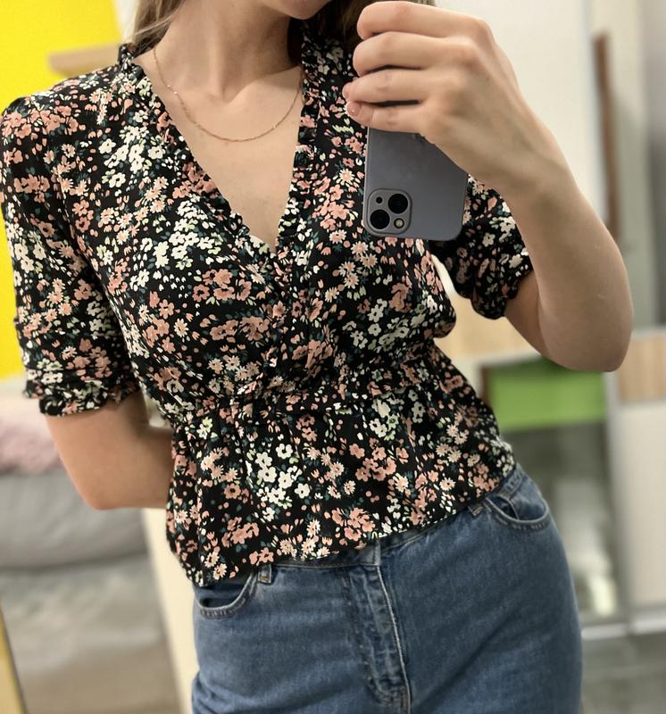 Блуза на резинке, в цветочный принт от primark Размер 36 Длина 50 Пог 42 Рукав от плеча - 41 Рукав внутренняя сторона - 22