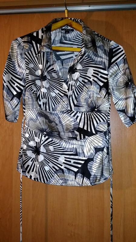 Блуза М 46р.в очень хорошем состоянии,внизу сбоку молния,ПОГ 46,ПОТ 38,длина 59см.Сзади завязки на талии.Цвет-чёрный,беж,белый,серый.