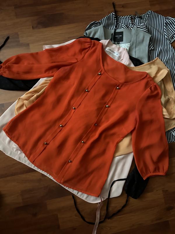 Легкий полиэстер, немного просвечивается, не тянется Без следов ношения Длж-58см Ног-46/48си Нот-44/45см Ноб-до 53см Рукав от горловины-45см/3/4/