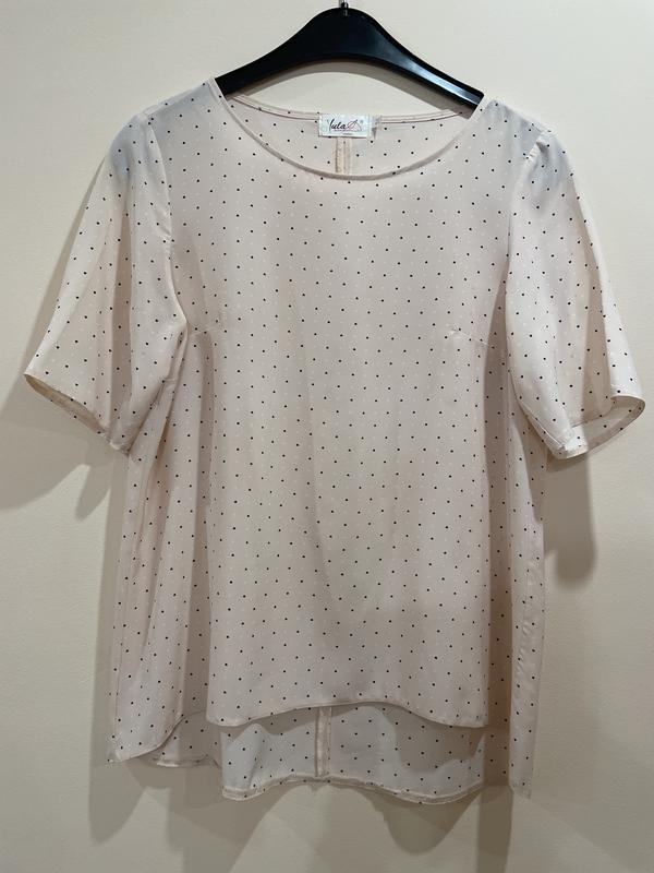 Блуза с маленькими сердечками. Сзади немного удлинена. Из легкой ткани. Приятная к телу