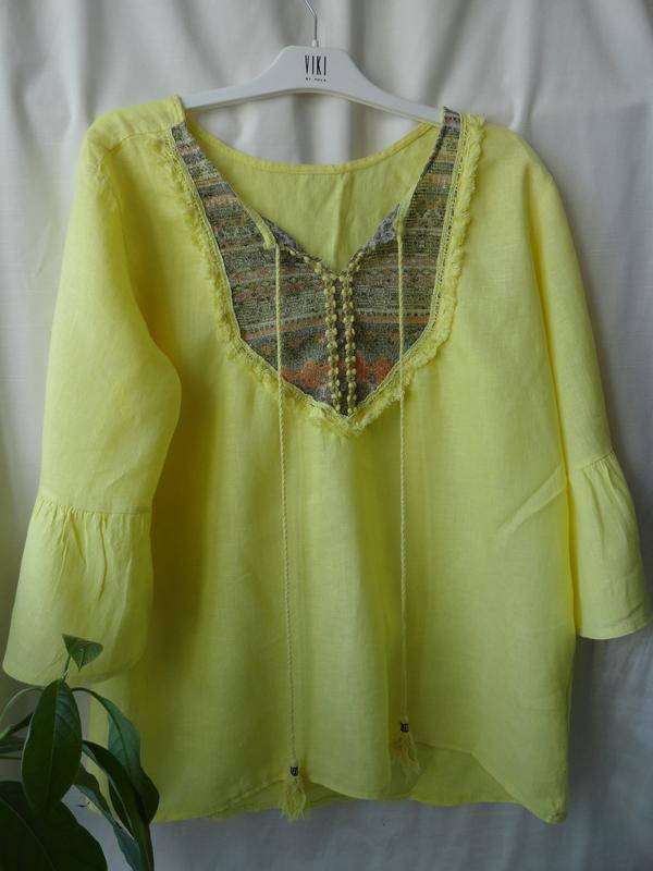 Свободная блуза , рукав волан, в стиле бохо . Замеры : Длина от плечевого шва - 71 см , плечо - 12 см , рукав -44 см . по линии груди - 60 см .