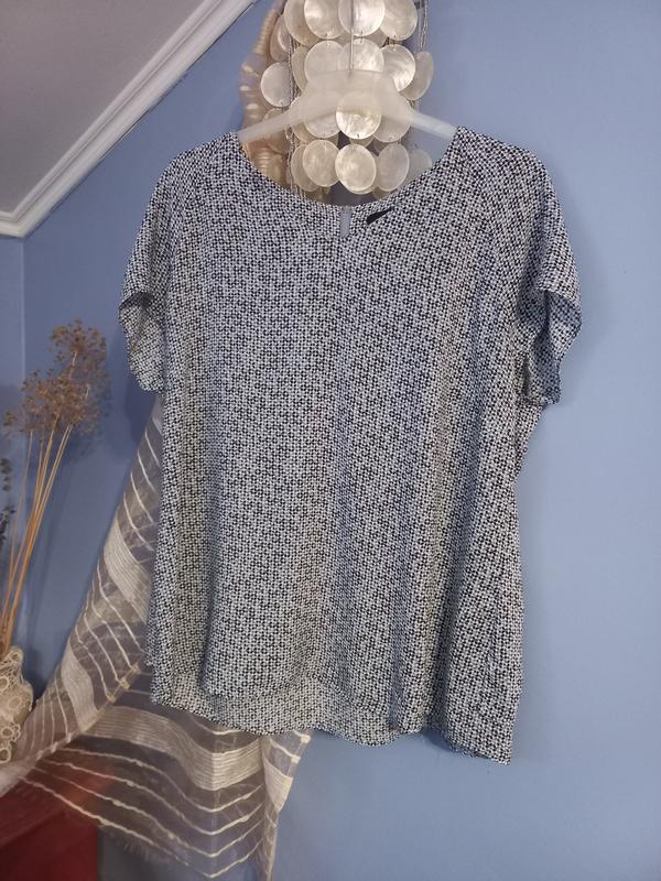 летняя блуза, в хорошем состоянии, интересный фасон, 100% вискоза Замеры: плечи - 44 Грудь полуобхват - 54 По низу - 58 Длина - 62