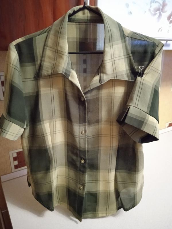 Блузка с коротким рукавом классика легкая не мнется, длина 62, в талии 84.