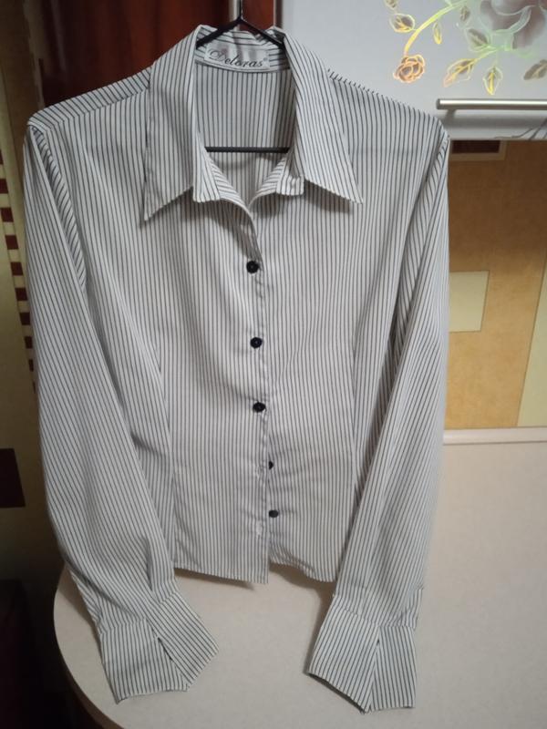 Блузка с длинным рукавом легесечка классика, не мнется, подчеркивает фигуру. Длина 60, по талии 85, рукав закладывается 64.