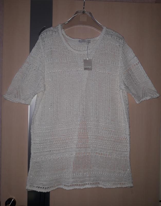 Красивая белая блуза.Оригинальная спинка. Состав:75% коттон,25% вискоза. Замеры:ПОГ 52 см,ПОТ 52 см,низ 54 см. Длина 78 см, длина рукава 34 см. Новая, имеет бумажную этикетку.