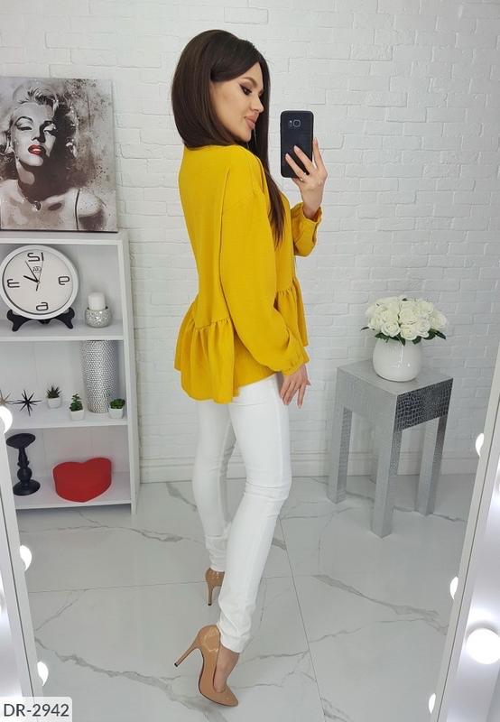 Блуза DR-2937 Размеры: 42-46 Тканина: котон жатка Цвет: горчица Длина спинки удлиненная Длина по спинке от плеча 70 см Длина переда от плеча 62 см Длина рукава от ворота 71 см