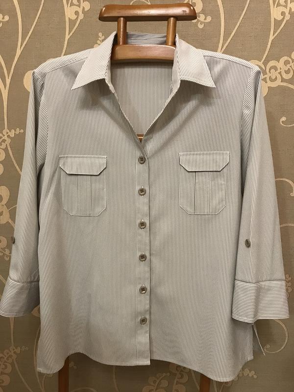 Предлагаю вашему вниманию очень красивую и стильную брендовую блузку в полоску, спереди есть два кармашка (в живую смотрится гораздо интересней). Фирма CLASSICS. Размер указан 18, но немного маломерит и по замерам больше идёт на 16. Состав: 100% полиестер. Новая. ПОГ-58, длина-70, плечи-45, длина рукава-51, ширина в талии-55, ширина по низу-59. ВНИМАНИЕ!!! При покупке три и более моих вещей-бесплатная доставка посылки Новой почтой. Удачных покупок.