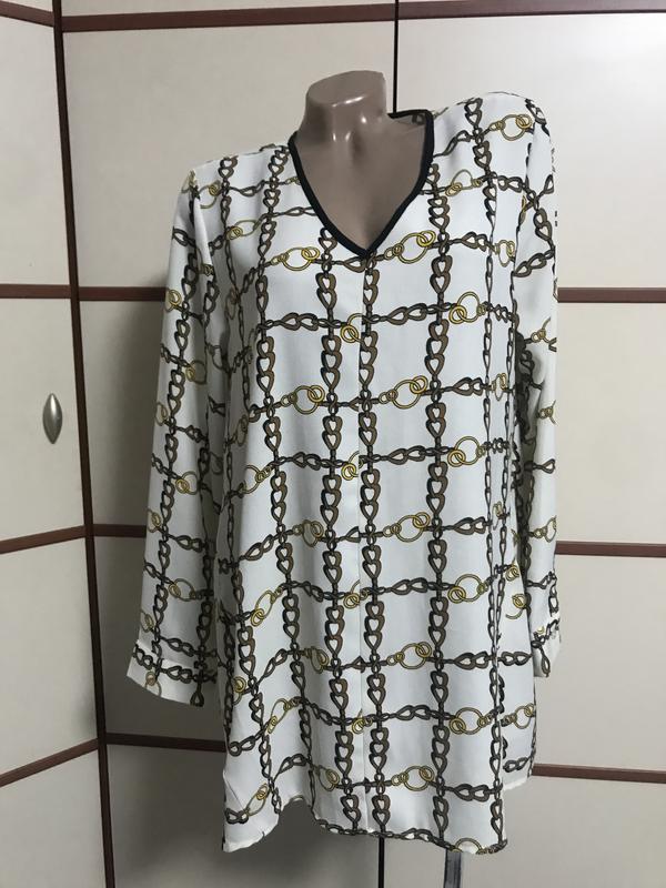 Красивая блуза,размер L-XL(указанный 16) длина 75см, длина рукава 59см, пог 54см,до низа свободная,в низу 78см.
