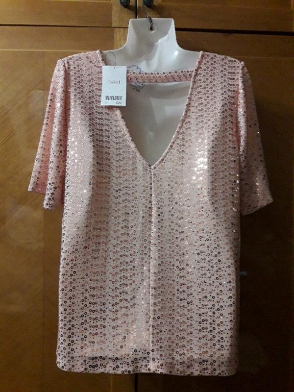 Брендовая новая стильная блуза в пайетках с вырезом сзади р. 12 /40 от next