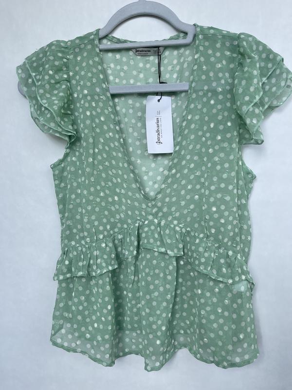Легкая блуза от Stradivarius. Все замеры на фото. При распаковке чуточку задела ткань на спинке( последнее фото). Смотрите другие Мои объявления😊