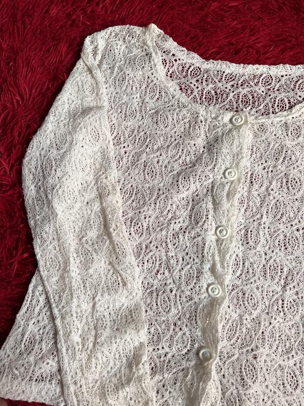 Молочная кружевная блуза на пуговицах, пуговицами красиво носить как на перед, так и обратно)