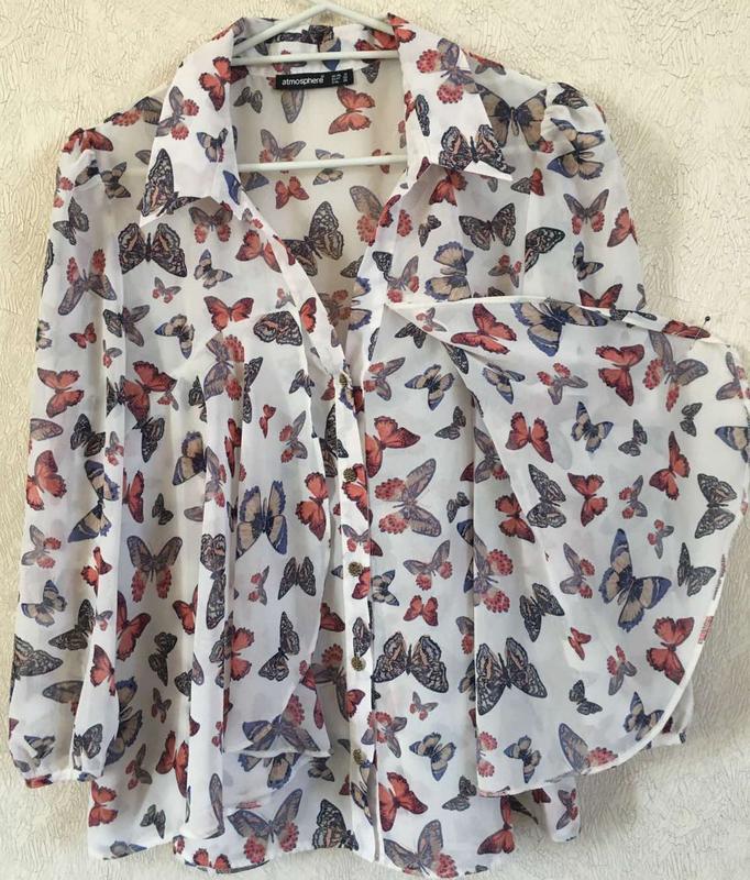 Блузка на передней полочке обьемная (двойная). Ткань похожа на крепдешин. Красивые пуговицы. Длина - 62 см ПОГ - 45 см ПОБ - 52 ми
