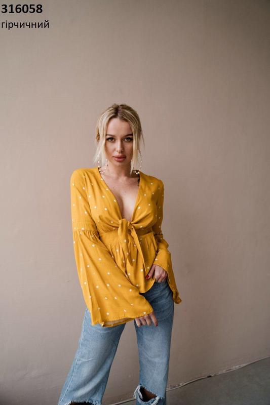 Блуза в горох Стильная модель в горчичном цвете Размеры: 42, 44 Цена: 270 грн