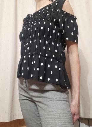 Интересная и красивая блузка. На нижнем ярусе- резинка. Подходит на р. XS, S, начальная М. На фото рост 170, р. М Спереди немного короче..