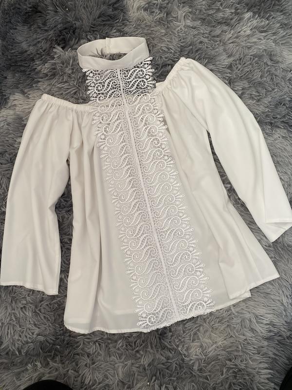 На наборе указан размер 42, но отлично подойдет для S/36 и M/38 Состояние: новый, с этикеткой Состав: полиэстер 70%, вискоза 30% Ткань напоминает шифон, немного просвечивает Есть недостаток: маленькое пятно на «чокере» (возможно даже отстирывается)