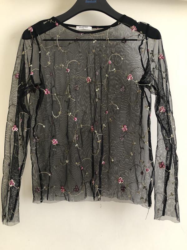 Блуза-сеточка в цветочный принт Размер М-L Имеет необработанный край
