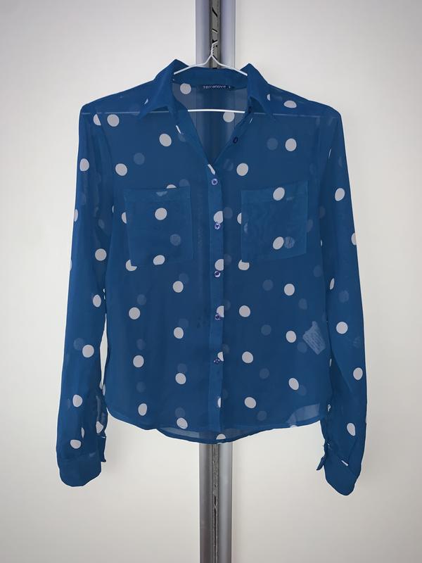 Блуза синяя в белый горошек. Размер S. Стан 4/5. За деталями звертайтесь в пп📩