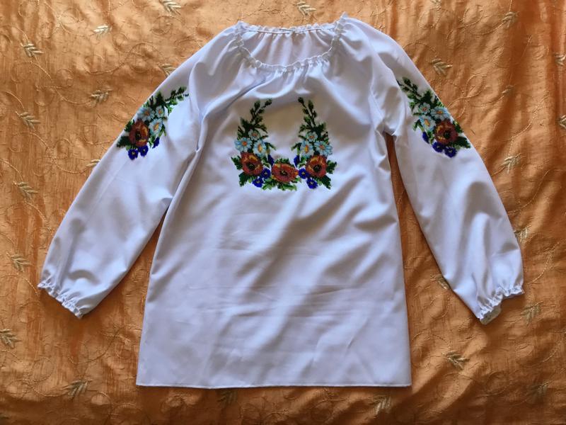 Вишиванка (бисер). Не короткая, сделана как туника. Воротник и манжеты на резинке.