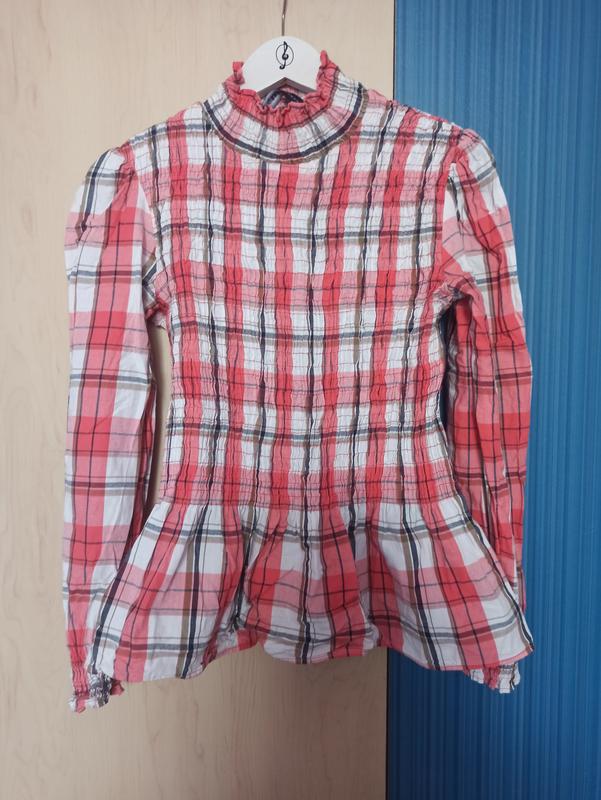 дуже гарна блузка з резинкою на грудях та рукавах. комір стійка