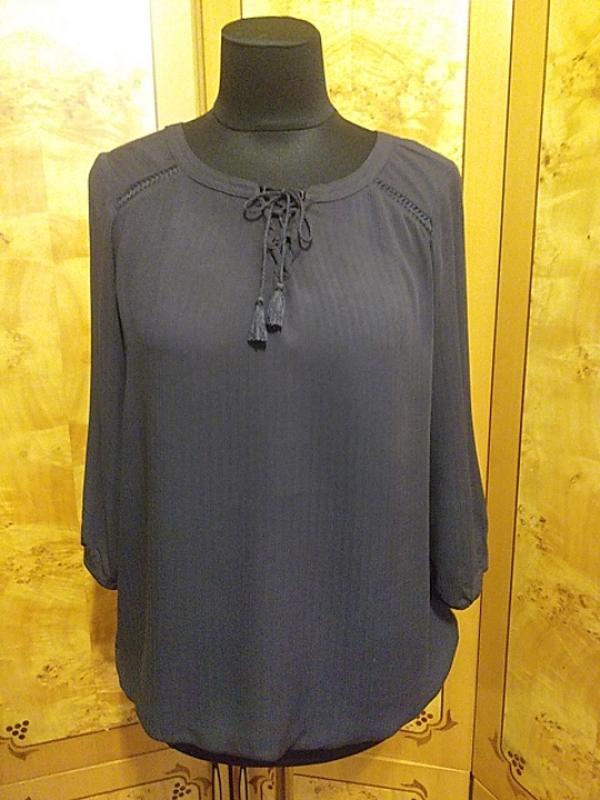 Жіноча літня блуза в ідеальному стані розмір с м, низ під резинку, рукава також з резинкою красивий колір сіро-чорний,3/4 рукав. Заміри: Пог 52, плечі 36, рукав від плеча 43, спинка 64,резинка низ в спокійному стані 39