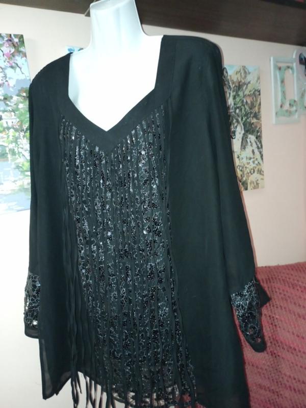 Двойная шифоновая блуза. Длина по спинке 77 см, пог 64 см, пост 62 см, длина рукава 54 см.