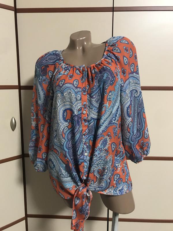 Красивая блузка,размер S-M (указанный 8) длинна 63см,пог 47см,пот 47см, поб 53см,в низу завязывается.