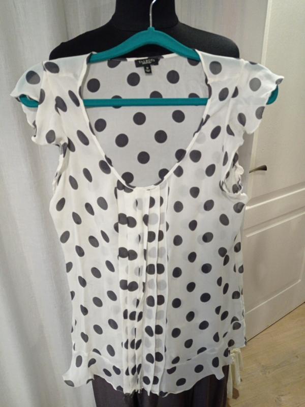 Классическая мягкая блуза в горох. Подойдет как с брюками, так и с юбкой.
