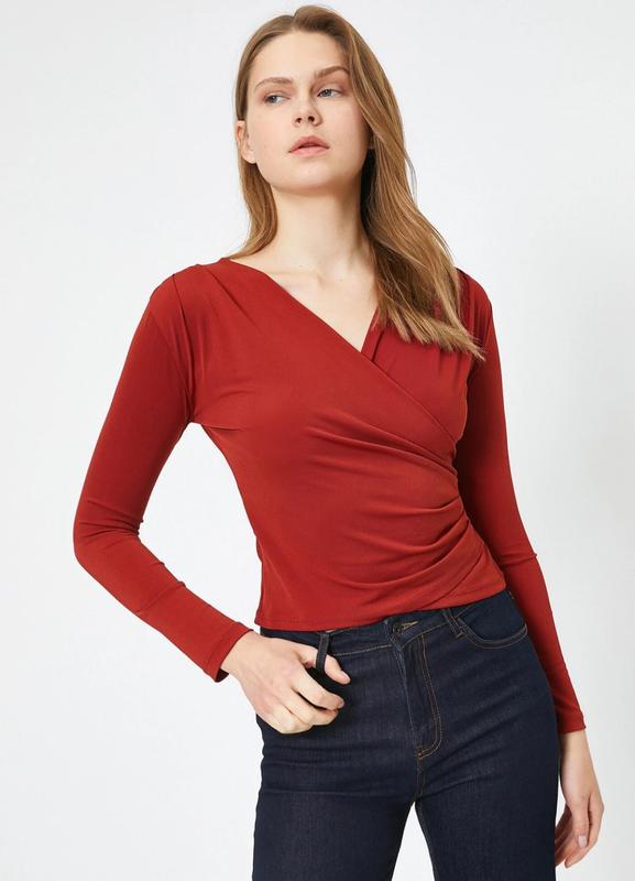 Темно-красная блуза. Демисезон. V-образный вырез