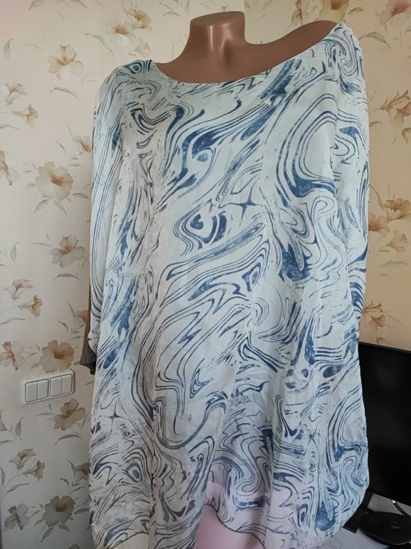 Оригинальная блузка свободного кроя. Лёгкая, ткань приятная к телу. Снизу майка, хорошо тянется. Отлично смотрится с любым низом одежды. Верхняя ткань - нежный натуральный шелк 70% и вискоза. Состояние идеальное. Дефектов нет.