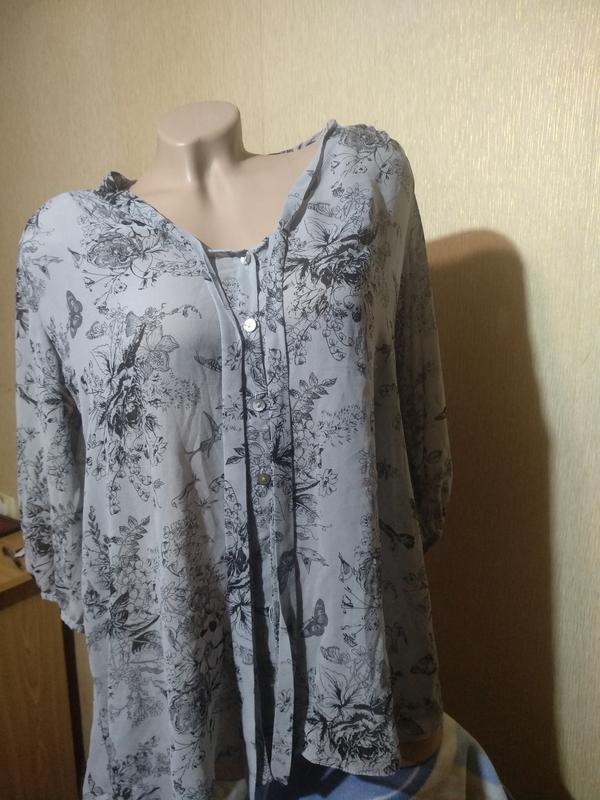 Блуза в хорошем состоянии,не хватает одной пуговицы на фото видно, лёгкая приятная к телу. Объем груди 116,по низу 144, плечо 10,рукав 3/4-44, обхват бицепса 40, длина по спинке 70. Больше одежды в моем профиле.
