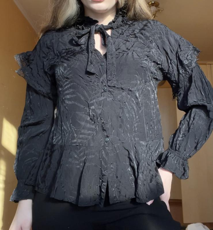 Красивая легкая блуза от бренда Zara, имеет рюши на рукавах Одето на рост 160 см 91-72-95 🤍159