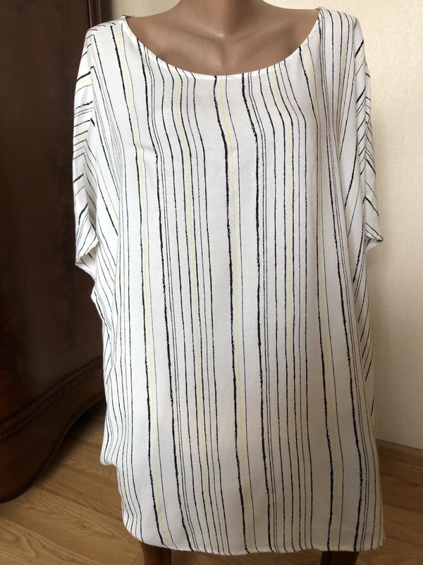 Блуза через голову в черную с желтым полоску. Состояние очень хорошее. Бренд:Esmara Размер:54 Груди-72см Длж.от плеча-33см Длж.по спине-70см Ширина низ блузи-70см