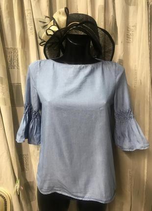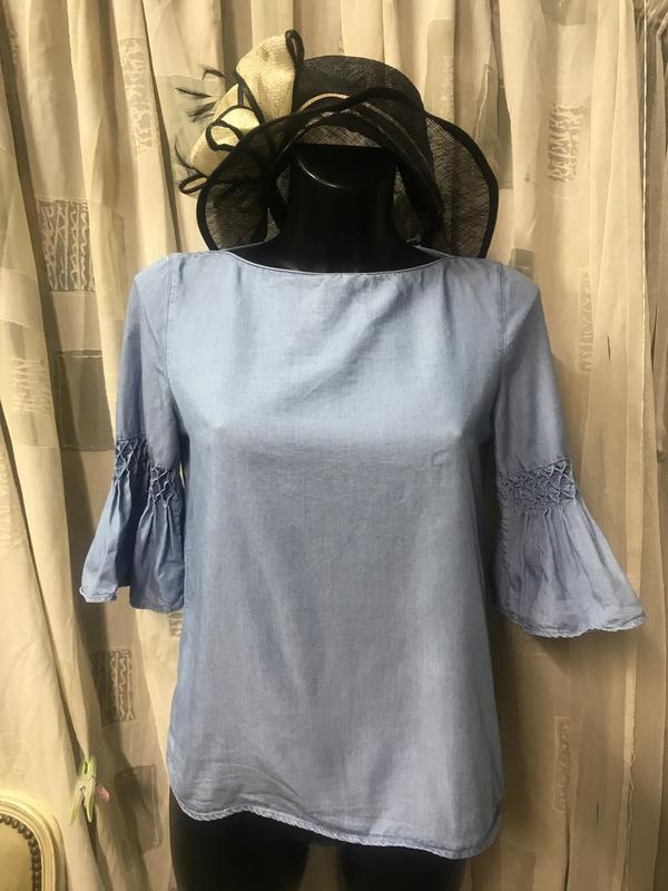 Блуза из лиоцела отMassimo Dutti. Красивый рукав, крой, качество. Состав:лиоцел-100/. Размер по бирке-38, но по замерам- на S/XS. Замеры: длина-57 см, ПОГ-46 см, ПОБ-49 см, рукав-3/4. Есть нюансы-см. Два последних фото-учтено в цене изделия.