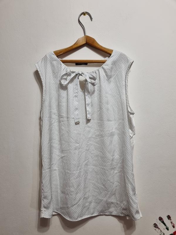 майка блуза размер М, сзади хлопковая ткань замеры: подмышками ширина - 47см длина от плеча - 58см ширина где живот - 47см длина выреза для рук - 18см присутствуют дефекты – последние 3 фото желтых пятен нет