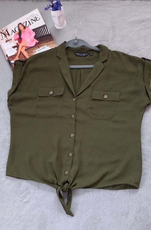 Блуза из американского крепа. Внизу на завязке. Размер 40. Длина-60 см. О.гр.-116 см. О.т.-104 см.