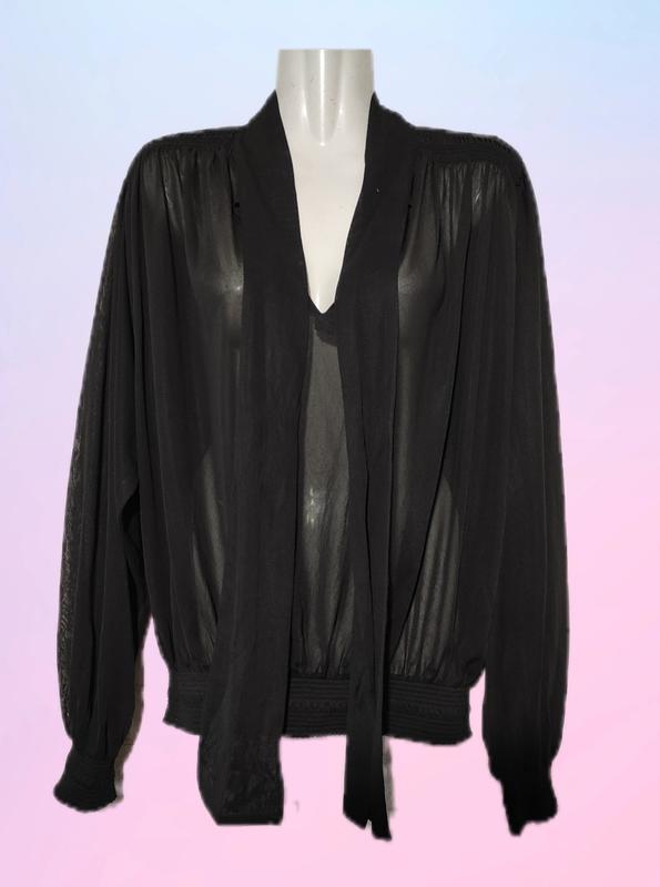 Полупрозрачная рубашка, блуза черного цвета размер UK 16, EURO 42 Замеры: Длина 62см длина рукава 63 см ПОГ 74 см ПОБ 40-70см Состав: poliester
