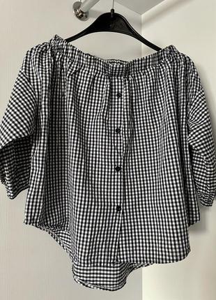 Легенька блузка,кофтинка. Ґудзики по переду. Верх на резинці,одягається на плечі. Вільного крою. Рукав 3/4 як фонарик.