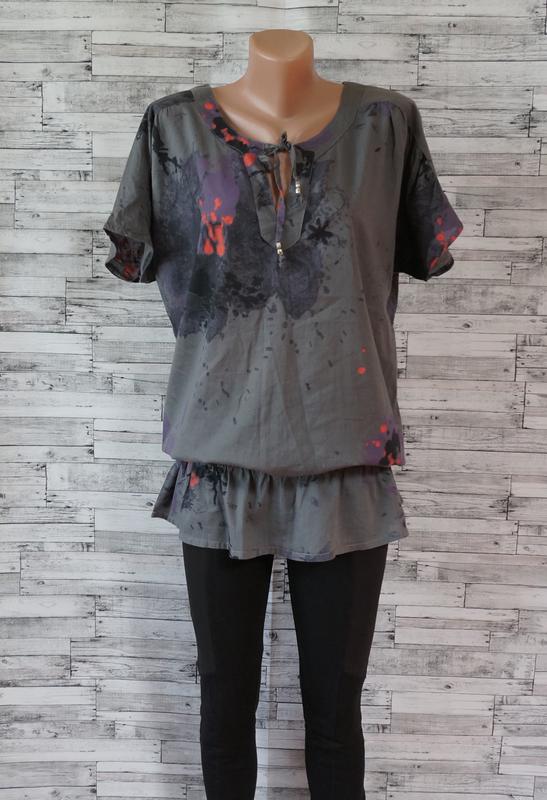 Серая блуза, удлиненная. Можно носить как тунику. Указан размер L ПОГ 56 Длина 77 100% коттон