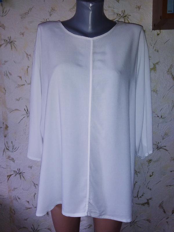 Размер 50 (евро), смотрите замеры. Ткань тонкая, легкая, не тянется, на ощупь как вискоза. Этикетка со складом ткани отсутствует. Состояние: очень хорошее. !!!! Есть нюанс - маленькое пятно, сзади, почти по низу, видно на последнем фото. Цвет белоснежный. длина от верхней точки плеча до низа 72. длина рукава от горловины 54. полуобхват бицепса: 24. полуобхват груди: 66. полу охват талии: 66. полуобхват по низу 68. 35