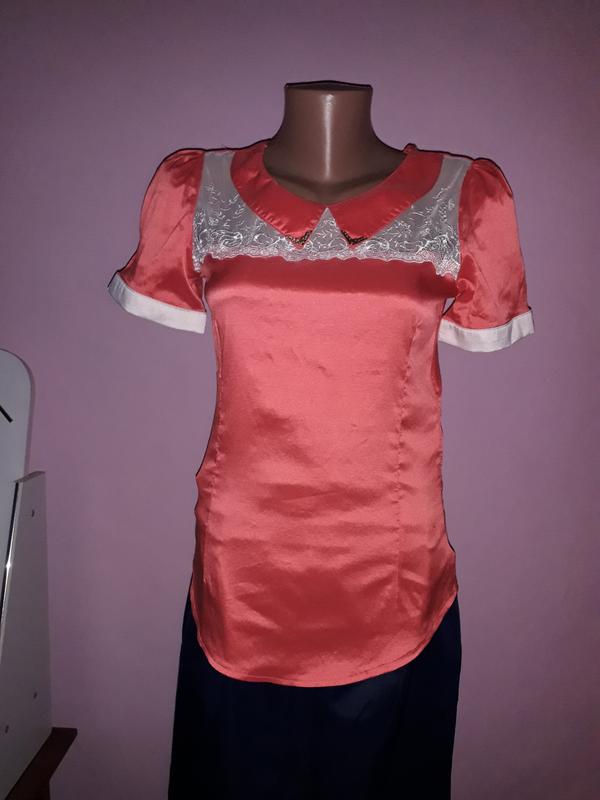 очень красивая,атласная блузка,ПОГ 42см,ткань тянется