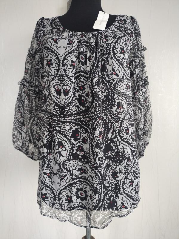 легкая шелковая блуза. Размер заявлен 8.длина 60, полуобхват груди 54, по низу 60.