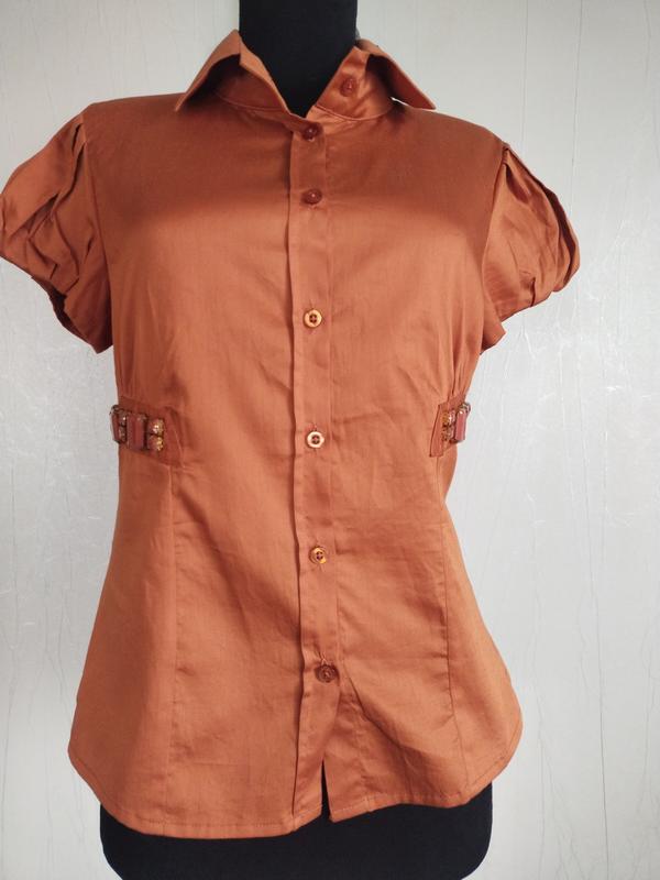 нарядная блуза на пуговицах, с украшением на поясе из камней. Размер S. длина 60, полуобхват груди 44, по низу 45.