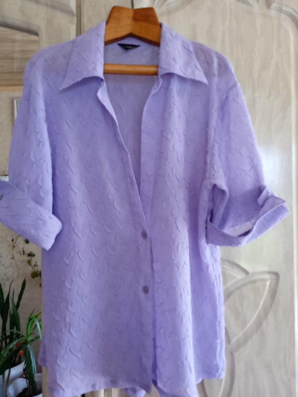 Стан идеальный.Цвет сиреневый, материал "жатый", красивый фасон, удивительно стирается, не выгорает. Для точности размера смотрите на Мои замеры - д. -66,перед-63, полукругом, п.о.грудей -50, п.о.талии -45, плечи -46, д.рукава -23, манжет -5, немножко тянется материал.О покупателе не пожалеете. Оплата на картку ( безпечна ) Доставка. Укр. пошта. (без возврата). Радуй ответ на все ваши вопросы с 17-21 г. Подписывайтесь на мой магазин и вы будете приятно удивлены большим выбором и малыми ценами, всегда будете знать о скидках и распродажах. При необходимости возможна новая почта.