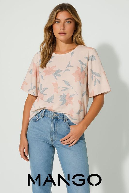 Летняя комбинированная блуза Mango вискоза р. 10/12 (р. S/М) Спинка вискоза, однотонная. Спереди шифон в цветочный принт. Блуза свободная. Замеры по запросу.